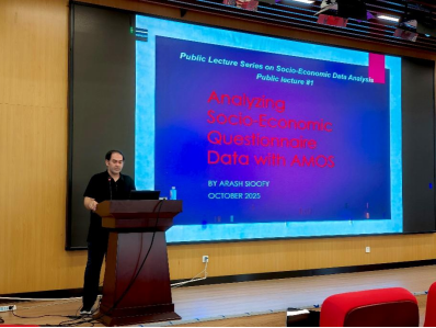 Arash Sioofy Khoojine博士学术背景深厚,于2015-2020年在上海交通大学攻读统计学博士学位,2012-2015年在华中师范大学攻读概率与数理统计硕士学位,在统计学、数据分析领域成果丰硕。讲座中,Khoojine博士以“社会科学市场调查问卷数据的AMOS全流程分析”为核心,开展了极具针对性的教学,从数据清理与准备、模型设定与路径规划、分析执行与结果解读、报告撰写与结论呈现四个维度,系统且通俗地讲解了如何运用AMOS工具开展实证研究。他结合本科论文写作需求,强调从数据预处理到结果清晰呈现的全流程规范,为师生在量化研究方法上提供了极具实操性的指导。