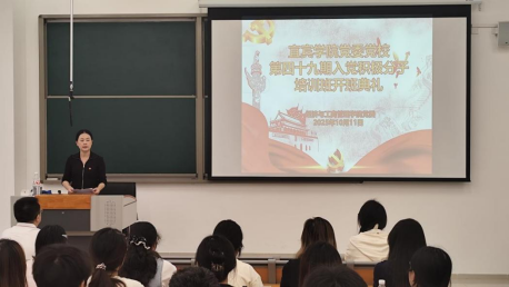 会议开始,第四十九期入党积极分子优秀代表岳春晓发言:“青年兴则国家兴,青年强则国家强”。选择加入共产党,意味着我们选择了一种更高的人生追求,选择将个人理想融入党和人民的壮阔事业,这既是无上的光荣,更是需要我们终身践行的庄严承诺。