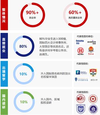 财务管理专业ACCA实验班学生未来将拥有广阔的就业选择面,可在大型跨国公司、专业性会计师事务所、大型国企与金融机构等从事财务、税务、商业分析、投融资、运营与管理等各类高薪职业。