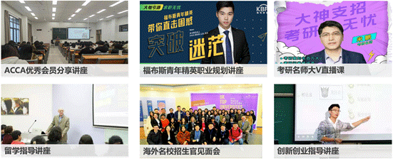 邀请职业规划导师、名校招生官,开展职业生涯规划指导、考研/留学指导、就业/创业指导,帮助建立清晰的未来规划。