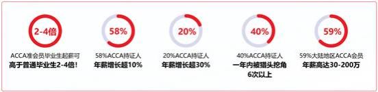 根据ACCA官方数据,ACCA准会员毕业生起薪可高于普通毕业生2-4倍,大部分正式会员年薪则可达到30-200万。据学校统计,历届财务管理专业(ACCA方向)毕业生薪酬普遍较高,位于全校前列。
