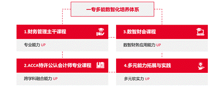财务管理专业(ACCA方向)聚焦新兴技术应用下财会专业学生的核心素养与技能,以当前全球大型企事业单位用人需求为导向,搭建起“财务管理主干课程+ACCA专业课程+数智财会课程+多元能力拓展与实践”的一专多能数智化培养体系,教学由浅入深、循序渐进,课程内容先进、覆盖面广、综合性强,聚焦会计、金融、财务管理、智能财务应用等学科交叉领域,旨在培养熟练掌握国内外会计、审计准则及相关法规,精通财经英语与智能财务应用,熟悉商业运行整体逻辑,具备跨学科整合能力、全球化视野与前瞻思维,综合素质拔尖的未来型数智财会人才。